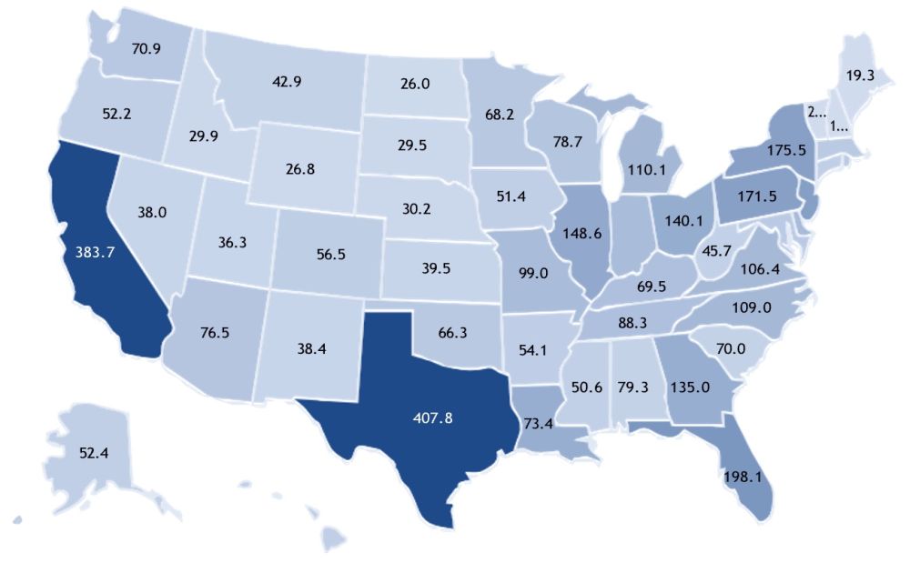 Five-year (FY 2022-26) National Electric Vehicle Infrastructure Funding by State (USD million)