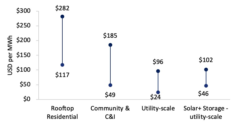 Levelized Cost of Energy in Unsubsidized Solar PV across Configurations