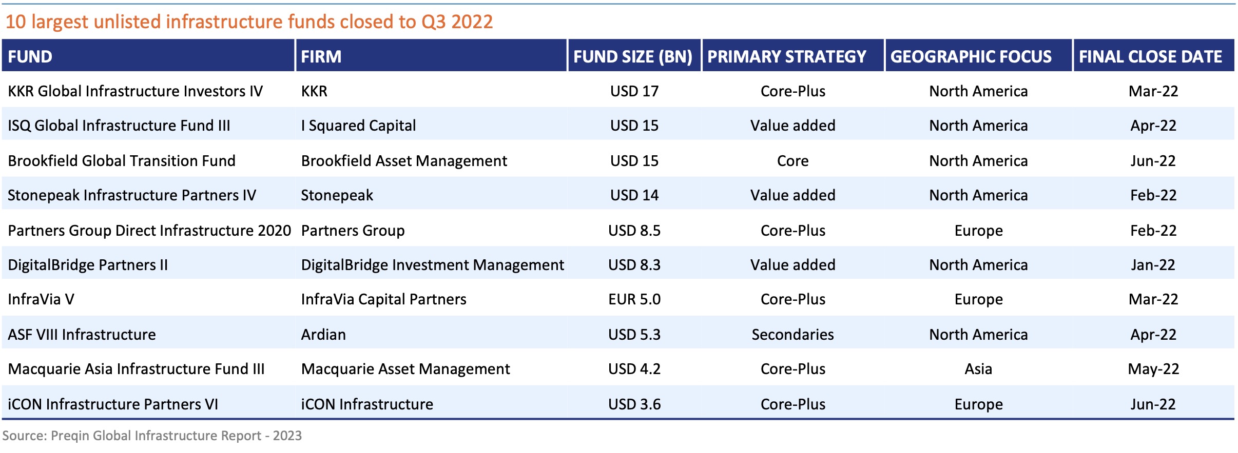 Global Infrastructure Fundraising by Strategy & Largest Funds Closed