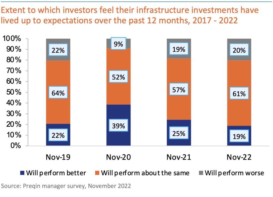 Investor expectations for the performance of their infrastructure portfolios compared with the last 12 months have returned to pre-COVID norms
