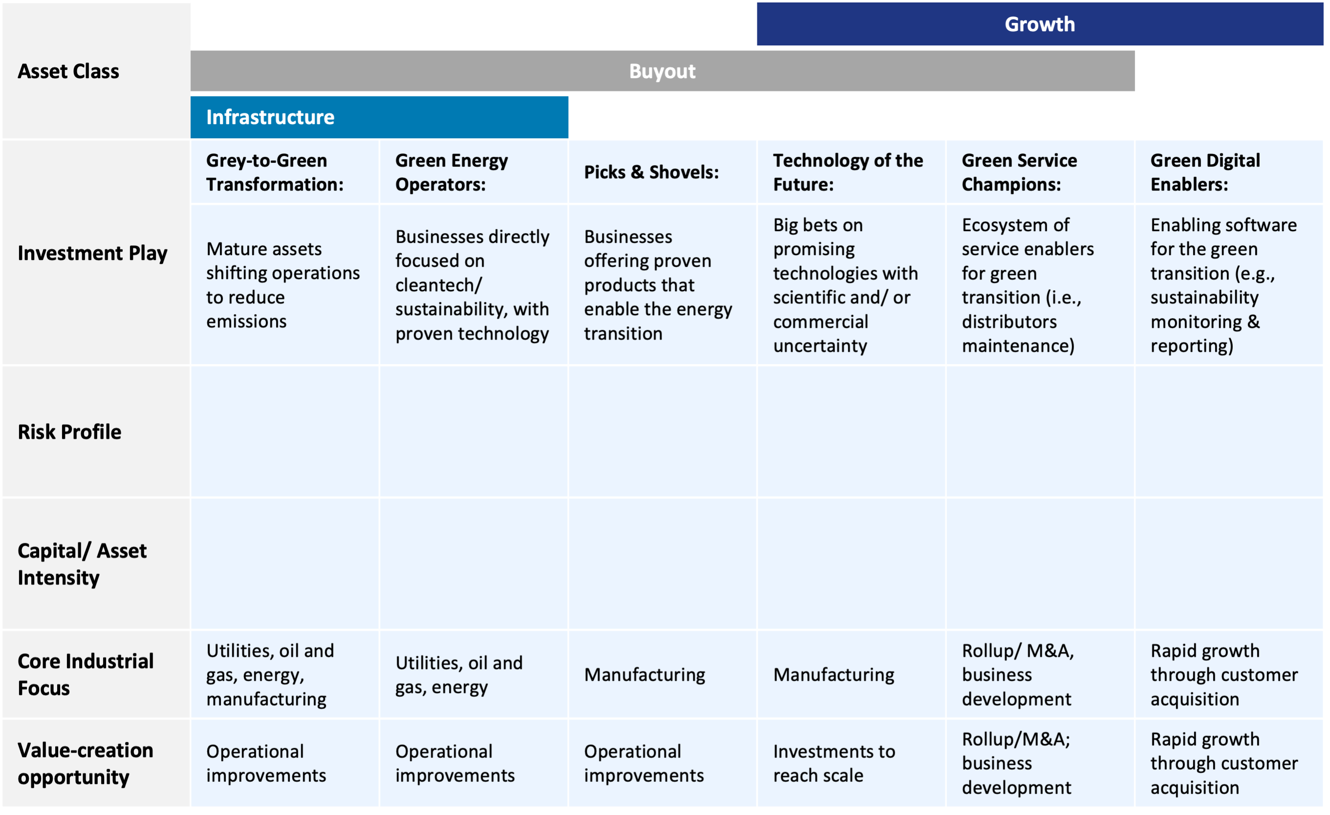 The right investment play depends on a fund’s appetite for risk and capital intensity, as well as its value-creation focus