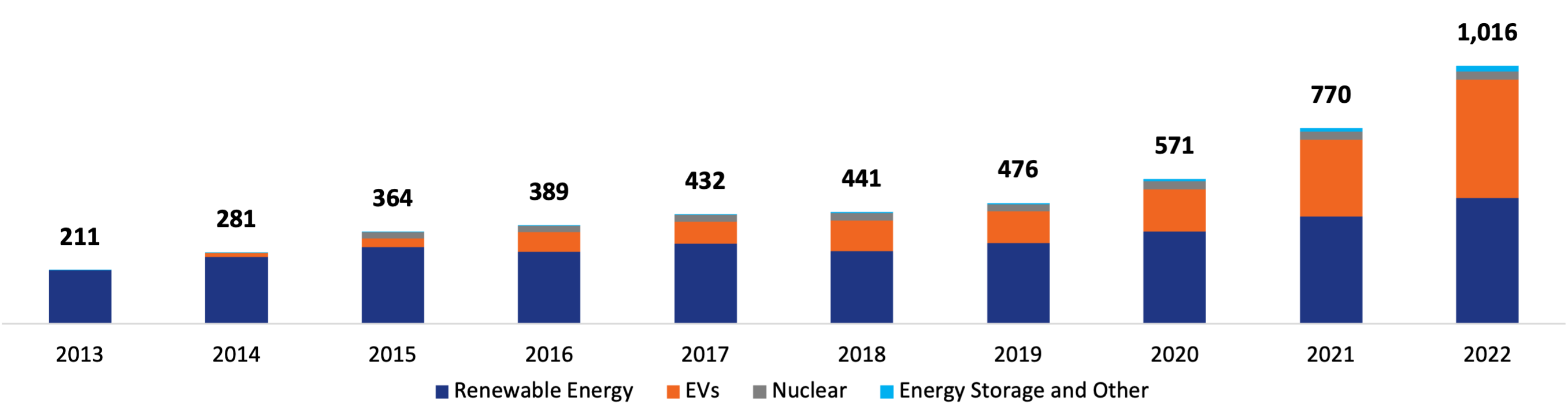 Despite this, Q3-22 shows a partial shift back towards conventional energy, or mixed energy funds, largely driven by more attractive oil and gas prices in the face of the ongoing Russia-Ukraine war.