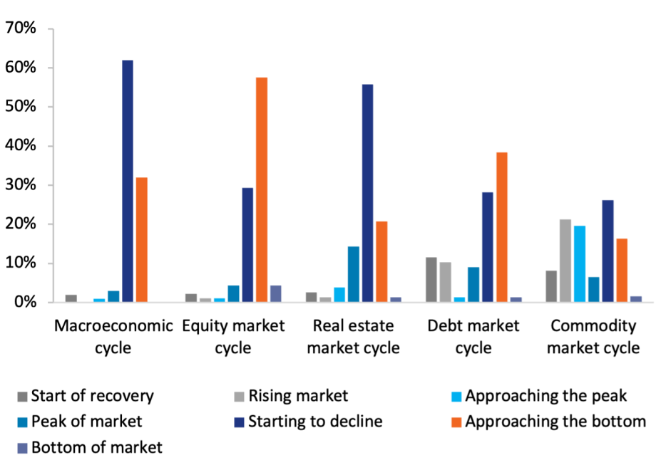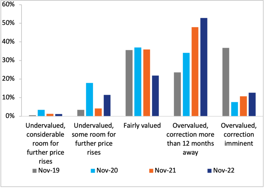 At November-22, 56% of investors believed that portfolio valuations had decreased from the proceeding 12 months, whilst only 62% regarded the equity market cycle as either at the bottom, or approaching the bottom