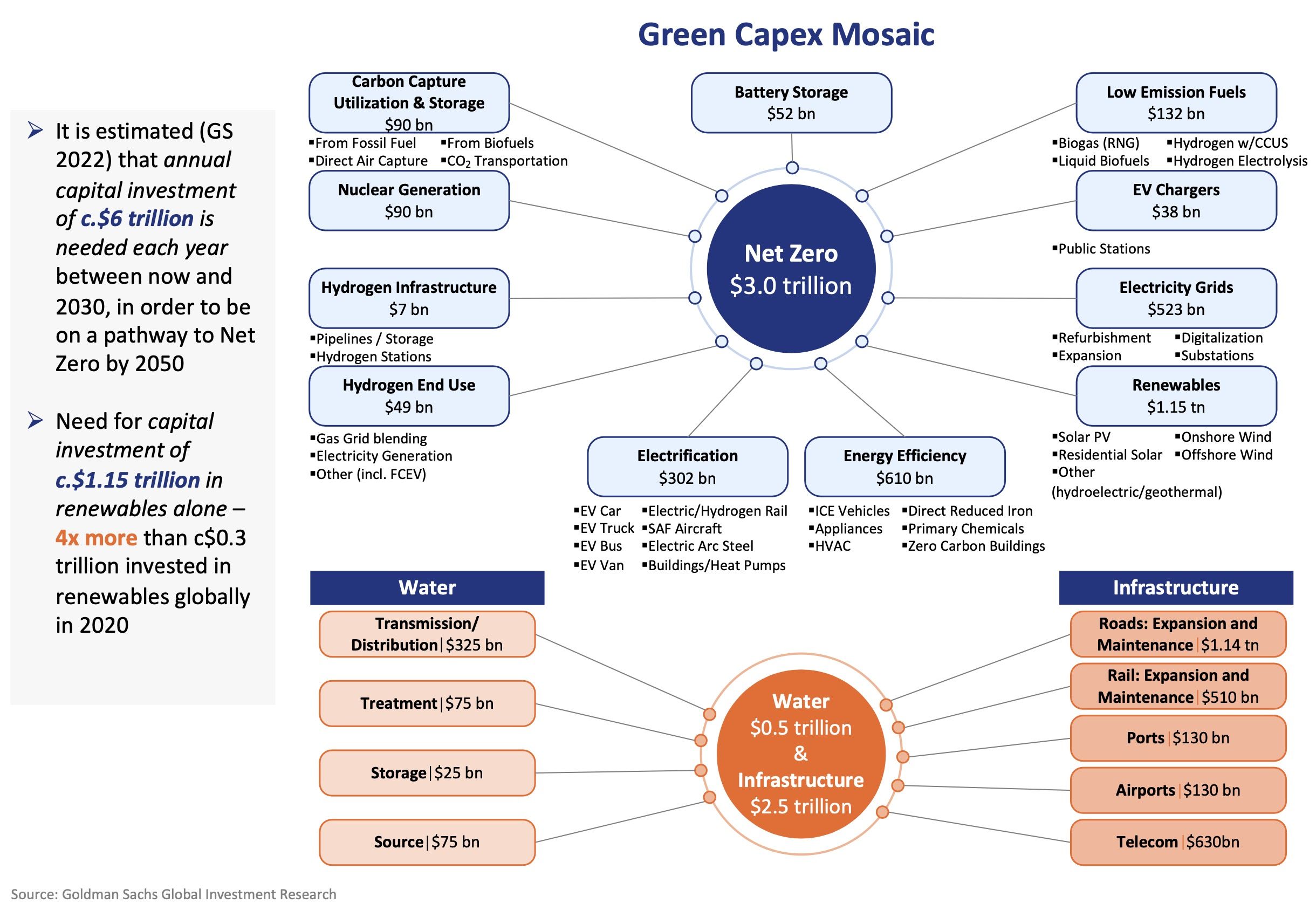 Green Capex requirement to 2030 to support Net Zero, infrastructure and clean water pathways