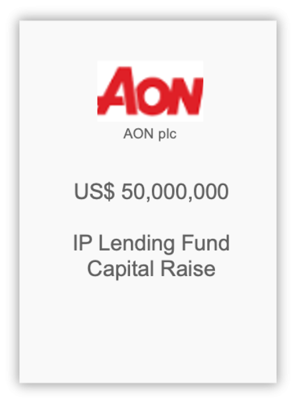 AON’s IP Advantage Fund makes 1st lien senior secured private credit loans to borrowers, backed by the borrower’s intellectual property (IP). The Fund leverages AON’s industry-leading 150+ person IP valuation practice which maintains valuation data on over 140 million patents. In 1975, IP represented 17% of S&P 500 balance sheets; by 2020 that proportion had grown to 85%. The Fund was AON’s first IP lending fund, closing on $268mm.